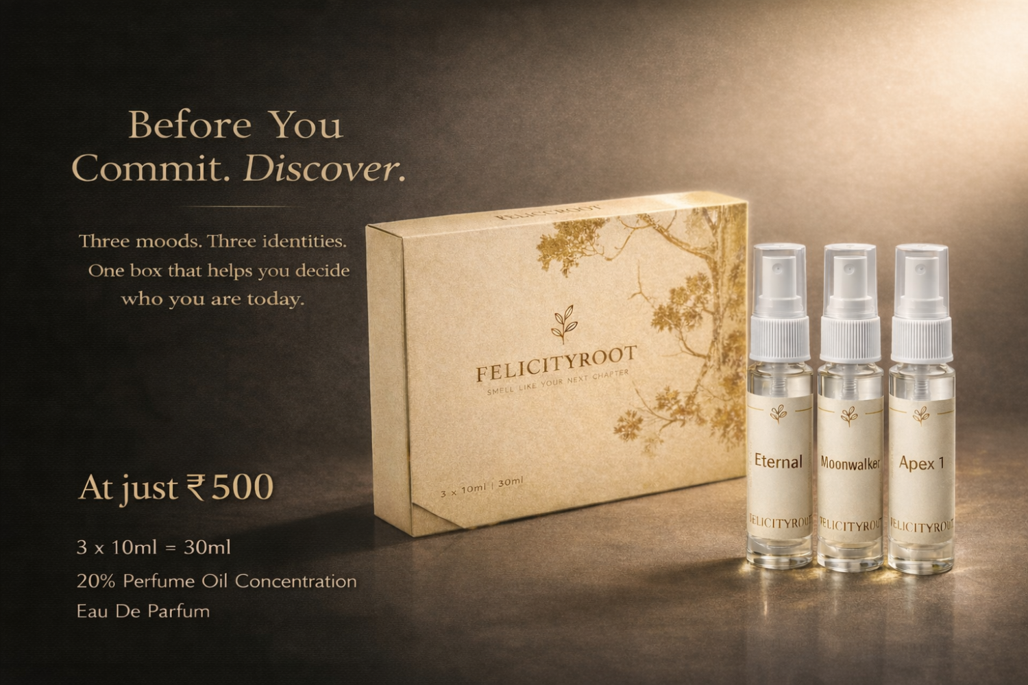The FelicityRoot Men's Discovery Set features three bold Eau De Parfums crafted for different moments and personalities: